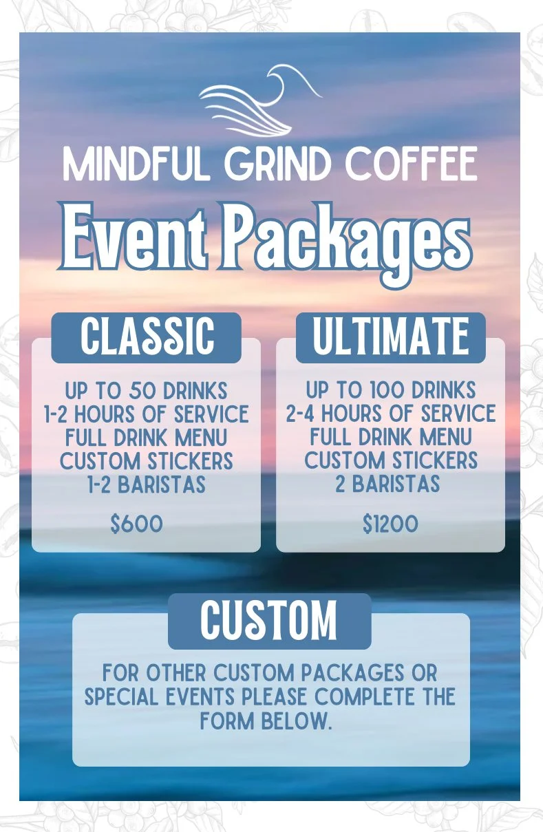 We are so happy you are interested in booking Mindful Grind Coffee for your next event. Whether it’s a wedding, baby shower, party, business meeting, teacher appreciation, or another outdoor gathering we are here to make it special. Please complete the form below to begin the process of working with us.